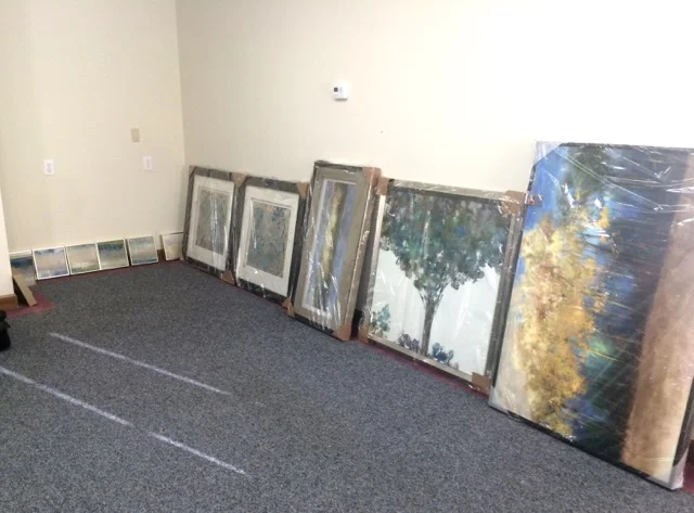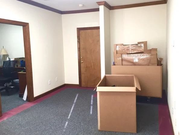 Here are some BEFORE photos below. We came in to a completely empty lobby/conference room and office (plus a packed storage room) when we arrived.