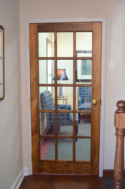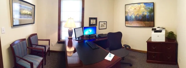 At the end of March we installed an office in Kernersville for just one mortgage loan officer - one office and one lobby/conference room in a larger office building. NSB took on this office in its current state - no renovations were in the budget this time. So this was one of those jobs where we had to accept and overlook the negatives where necessary. Just keep in mind we would have changed the carpet, trim and doors in a heartbeat if we could have :)